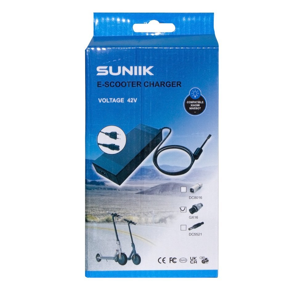 El cargador premium de 42V y 2A con conector de 3 Pines GX16 está diseñado para una carga eficiente y segura de dispositivos eléctricos que operan a este voltaje. Su robusto diseño y la calidad de construcción aseguran una larga durabilidad y un rendimiento confiable.