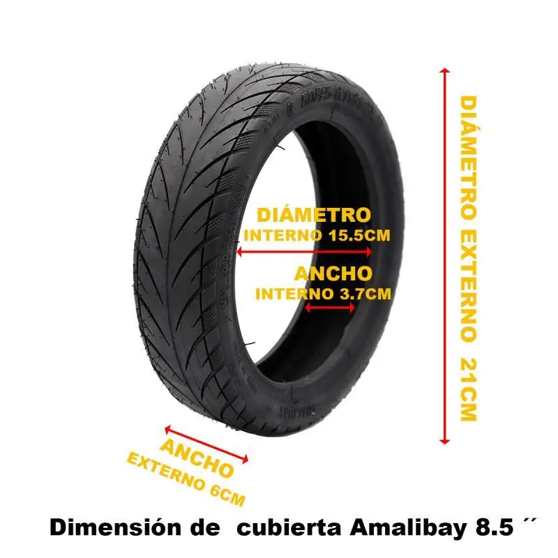 Pack 20 unidades de neumáticos 8,5×2 Premium de la marca Amalibay, caucho de altas prestaciones y dibujo exterior mejorado para una rápida evacuación del agua. Producto exclusivo en Emove.